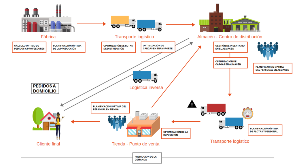 Una cadena logística es el conjunto de actividades, procesos, recursos y actores que intervienen en el movimiento de productos desde los proveedores hasta el cliente final. Incluye la gestión de compras, transporte, almacenamiento, inventarios, distribución y el flujo de información que conecta a todos los participantes. Su objetivo principal es garantizar que los productos lleguen en el momento adecuado, en las cantidades correctas y al menor costo posible, manteniendo la calidad y satisfacción del cliente.